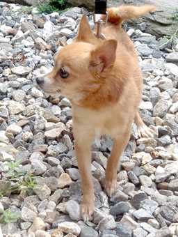 CALLIELittle Callie breaks the cuteness record! Her perky smile and sunny disposition have warmed our hearts. We can't fathom this cutie patootie, two year old, Long Hair Chihuahua/Pomeranian mix prancing through the mean city streets completely unescorted. Callie is the kind of privileged doll baby who should be riding in the back of her owner's white stretch limousine wearing a red velvet frock. |
