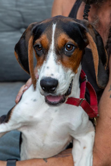 SCARLETScarlett is a beautiful orphaned hound who recently joined our Connecticut Rescue. Just 8 months old, Scarlett is already a rescue statistic. Despite the chaotic shelter process, she shows no obvious signs of trauma or neglect. Scarlett is a total lovebug, with a gentle temperament and sweet personality. |