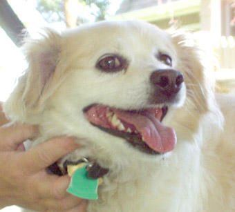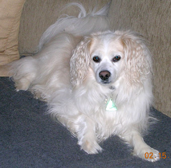 Jumping: High and hard. Jumps to greet, jumps when excited, jumps to go out or come in and jumps ahead instead of waiting for a command. He could easily knock down a child or someone who is not steady on their feet. Training classes or experienced owners could stop this. I am working on "sit" when I approach him as his time here will not allow for much more than that. Quirk: Tonga has, upon meeting someone new, curled his lip a little and gave a faint growl. I will know more about that as time passes but it just may be the Eskie/Cocker wait and see attitude when meeting strangers. He did it to me so I ignored him and by the time we got home he couldn't get enough of my attention. He is very affectionate and likes to cuddle. |