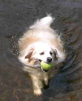 Tonga has been a delightful guest. He is not the least bit alpha and gets along with his hosts Ollie and TT Twig. He is excellent with the resident cats. Coming from a one dog home he is outstanding in his ability to share everything except "his" tennis balls with TT Twig. He would do well with a very playful companion. He is untiring in having the ball thrown then returns it to you unasked. He is very high energy and enjoys walks around town. Has beautiful leash manners. Also enjoys running on a very long lead in a local vacant development area. He really needs a family that can keep him active with running, swimming or sports. Likes to ride and jumps right into the front passenger seat then I buckle him in. Loves to swim. Took him to the lake today and he couldn't get enough of swimming after the stick. Had the 50' lead on and he swam as far out as possible. I believe I screwed up when I left his tennis balls in the car. Will remember tomorrow. |