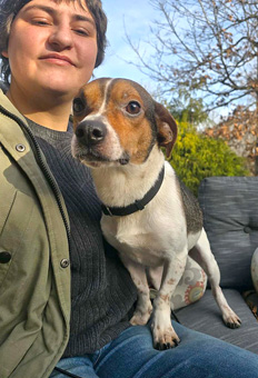 This Beagle–Jack Russell Terrier mix brings the best (and boldest!) of both worlds. He is a pint-sized boy at 16 pounds, and at 2 years old: his puppy mojo still shines. Ash loves to play, thrives on activity, and approaches life at full speed. He’s confident, clever, and yes — he has a bossy streak that shows his strong personality and classic JRT intensity. |