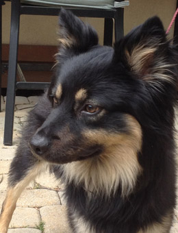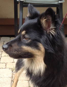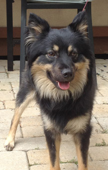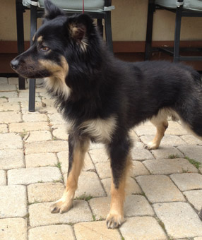 We think Buster is a creative mix of Border Collie, or some variety of sheep dog, and German Shepherd. He is a medium sized dog, weighing 38 pounds, and seems to be at a healthy weight. His black and tan coat is long and full, with cream colored markings, creating a lion's mane effect around his neck, while the rest of his coat is shorter and flat. Buster will need some grooming and regular brushing to maintain his boyish good looks and restore his coat to health. |