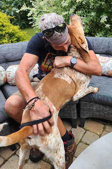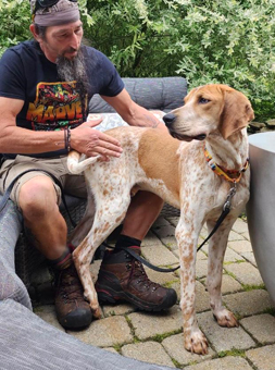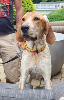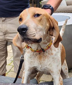 Cheeseburger is a very happy-go-lucky guy, and would be a great addition to an active family with older, dog savvy kids. He is friendly and will give everyone in the family equal attention. Cheeseburger is not one to play favorites, and he is stranger friendly. He could also join an active single or couple, who can provide at least one to two leisurely leash walks, so that he can meander and stop to smell the "roses." Scent hounds are extremely easy to manage because the leisurely walk that engages their senses, provides much needed mental and physical exercise. |