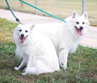 | Eskie people will understand that American Eskimos who are well cared for, tend to live long, active lives. Several of us in Eskie rescue have much older dogs than these guys, dogs who, based on their antics, do not think of themselves as "elderly". We believe this pair is likely still to have several years ahead of them. It would be wonderful if both Emma and Jake could find a forever home together. Of course, Emma is available to be adopted by herself too! | ![]() |