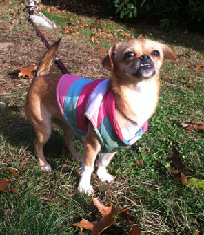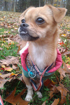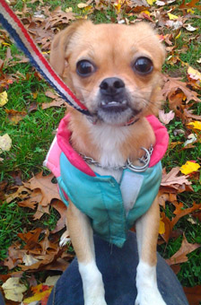 Shelter life is so stressful for many dogs that it's tough to get a sense of their personalities. Zitti is one lucky dog who recovered from "shelteritis" as soon as she walked through our door. She warmed up quickly and has blossomed into a joyous little imp who loves everyone. Zitti appears to be a mix of Chihuahua and Pug, and we have learned that Chugs are all the rage. Zitti's Chihuahua roots give her a desirable small stature, only 10 pounds, while the Pug DNA adds the buoyant joie de vivre to balance the Chi nervous nature. Zitti has some Pug facial features that make us giggle at her delightful expressions. |